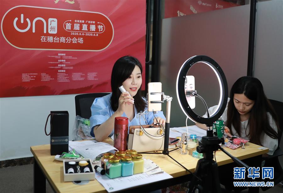 6月6日,广州启动“首届直播节”活动,这是主播在广州市白云区台商分会场直播带货。新华社记者 卢烨 摄
