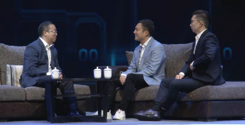 左起:重庆高新区管委会主任商奎、特斯联创始人兼首席执行官艾渝、招商公司副总经理周彦飞共同探讨智能经济对营商环境、服务能力的作用