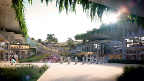 “山”建筑群作为醒目地标,为一系列引人入胜的公共功能庭院提供庇护,打造适应未来发展的工作场所。“谷”建筑群下沉式屋板,是中国现今最大的LED实时光绘屋顶,白天这里是绿色屋顶,提供露天娱乐休闲活动区域和零距离触达的自然生态景观;夜间这里将变成巨大的电子显示屏,当全重庆向上看,将看到科技营造的梦幻未来。