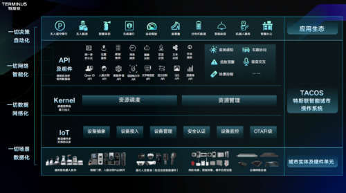 未来可达成的一切可能,依赖于特斯联独有的全球首个生态级城市智能操作系统——TACOS(TERMINUS AI CITY OS)。