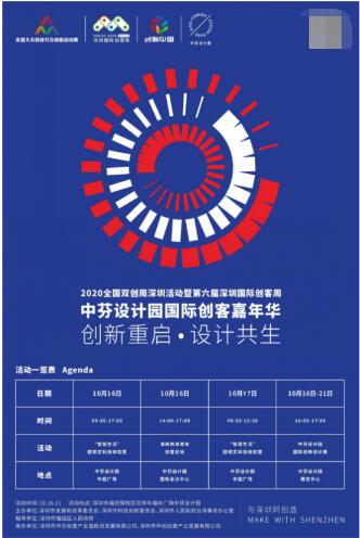 为深入推进大众创业、万众创新,深化新一轮全面创新改革,积极应对疫情带给世界的降速影响,恢复经济社会活力,凝聚双创向心力,汇集双创战斗力。由深圳市发展和改革委员会、深圳市科技创新委员会、深圳市人民政府台湾事务办公室主办,深圳市福田区人民政府指导,深圳市中芬创意产业园投资发展有限公司、深圳市中创创意产业发展有限公司承办的2020全国双创周深圳活动暨第六届深圳国际创客周(以下简称“创客周”)“创新重启·设计共生”国际创客嘉年华系列活动将于2020年10月16日至21日精彩呈现。