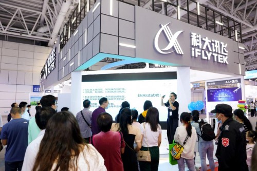 (第三届数字中国建设峰会成果展现场,位于10号馆10G01科大讯飞展位吸引了不少人工智能粉丝的关注)