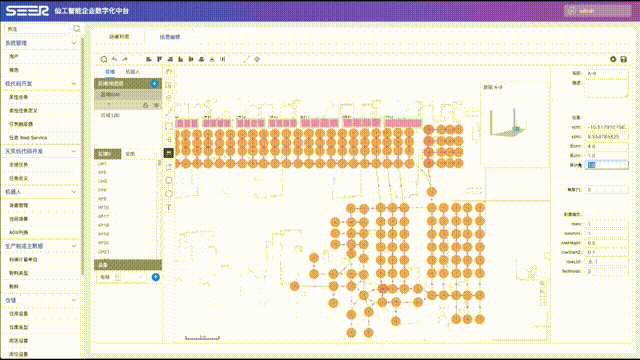 使用 SEED 中台打造的解决方案,在客户现场可做到一站式实施。如使用场景编辑工具,既可以绘制机器人的行进路线和站点,也可以设计构造电梯、门、交通指示灯、货架、产线等元素,并即时地看到它们的 3D 模型。