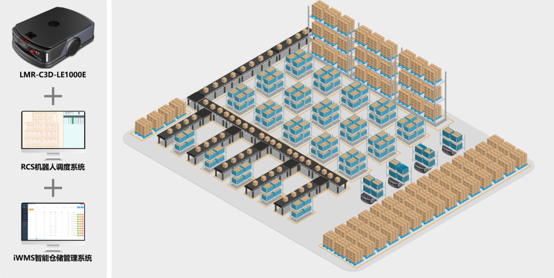 现场展示了高性能智能移动机器人——LMR-C3D-LE1000E,以及依托智能移动机器人本体和软件系统组合形成的智慧物流、智能仓储解决方案。