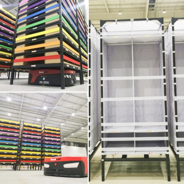 针对服装和鞋靴存在的尺寸和季节差异,牧星智能设计了平层及悬挂等多个类型的货位,这些拥有牧星智能专利的货架都是首次出现。