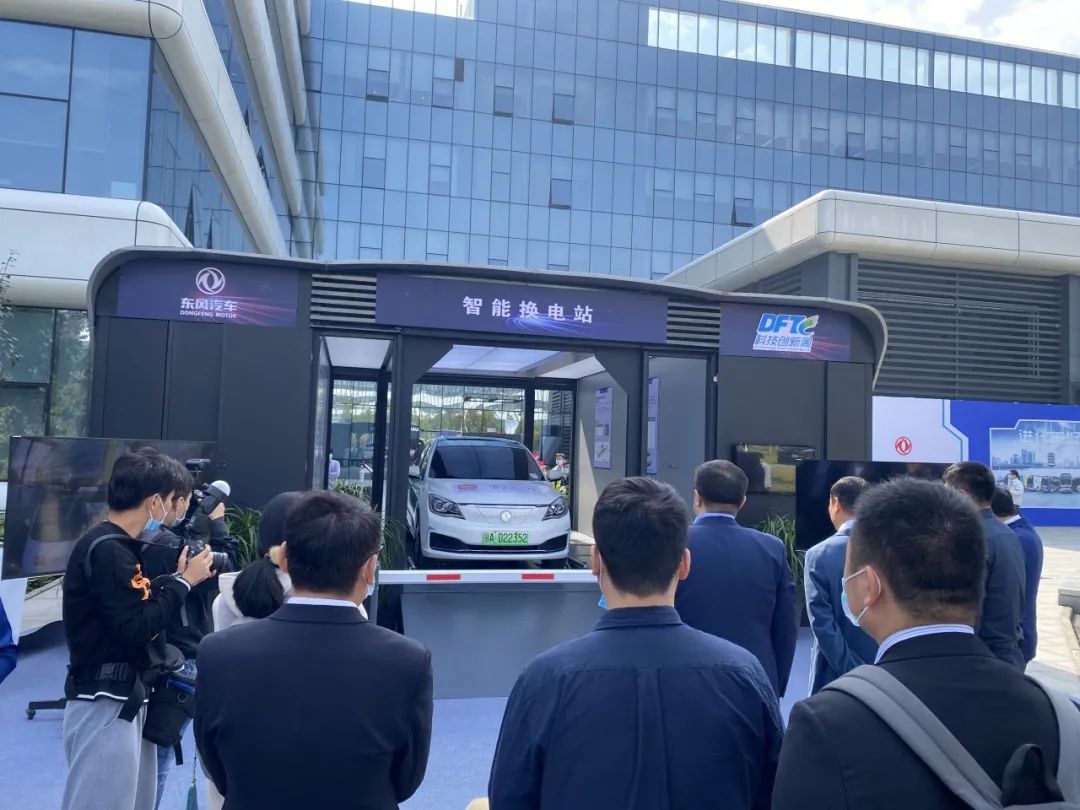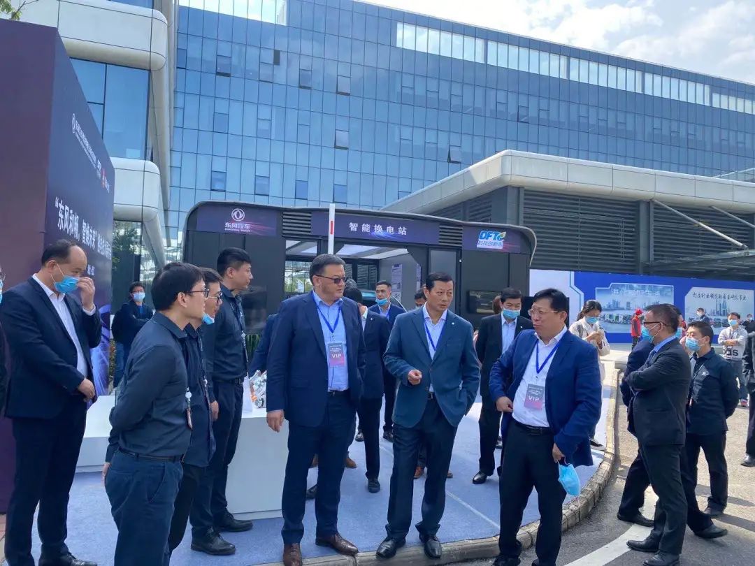 此次东风科技周展示的换电站由博众与东风技术中心共同研发,展示了行业内换电技术的最高水准。开幕式结束后,东风公司领导竺延风及与会嘉宾等一行共同参观了智能换电站展区,观看智能换电演示过程。