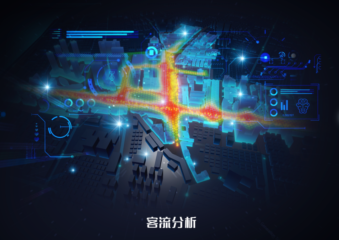 除此以外,平台还能够基于联通基站和客流监控设备对获取的客流数据进行分析。平台上的客流热力图可以直观反映客流的分布位置和不同时段的疏密情况,由此得出当天的实时客流数据,以及各路段的客流分布占比和排行情况。客流大数据可以帮助街区管理人员及商家掌握步行街的客流年龄分布、客流来源情况,辅助政府招商引资,和商家的针对性营销,以提升步行街的业态升级。