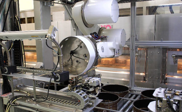 根据提案引进垂直多关节机器人(Viper),通过高自由度的【垂直多关节机器人+独有的机械手】再现人的复杂动作。1个小时在600个烤盘中垫入烘焙纸,从而实现自动化。