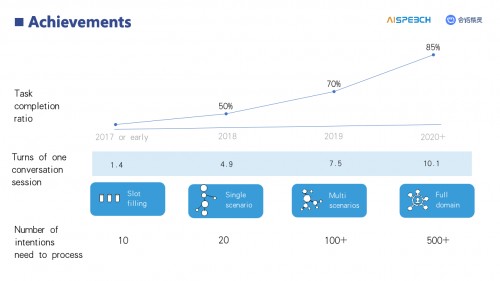 在机器人工厂和机器人超市的强大支撑下,思必驰的定制对话机器人现已能支持500+以上意图识别,能与用户进行10轮以上对话,并且支持语义打断、澄清等功能。(详见下图)