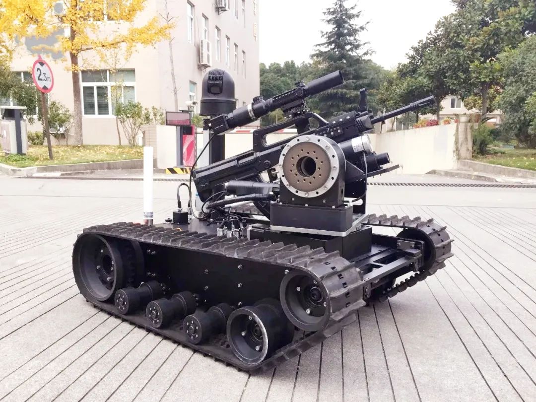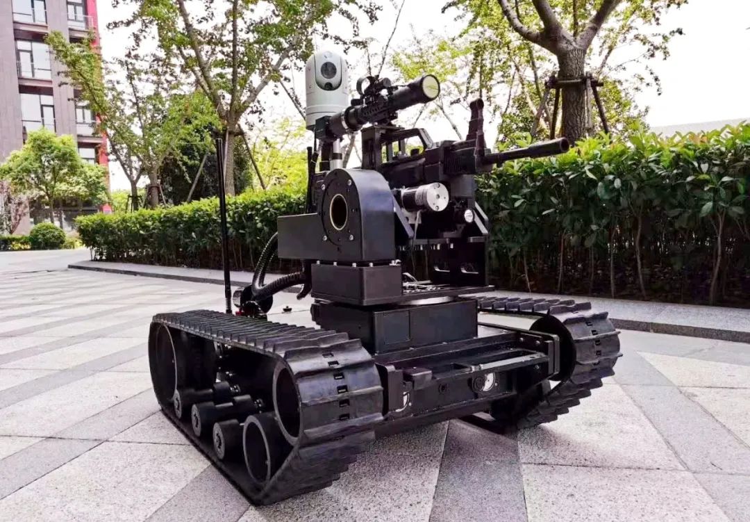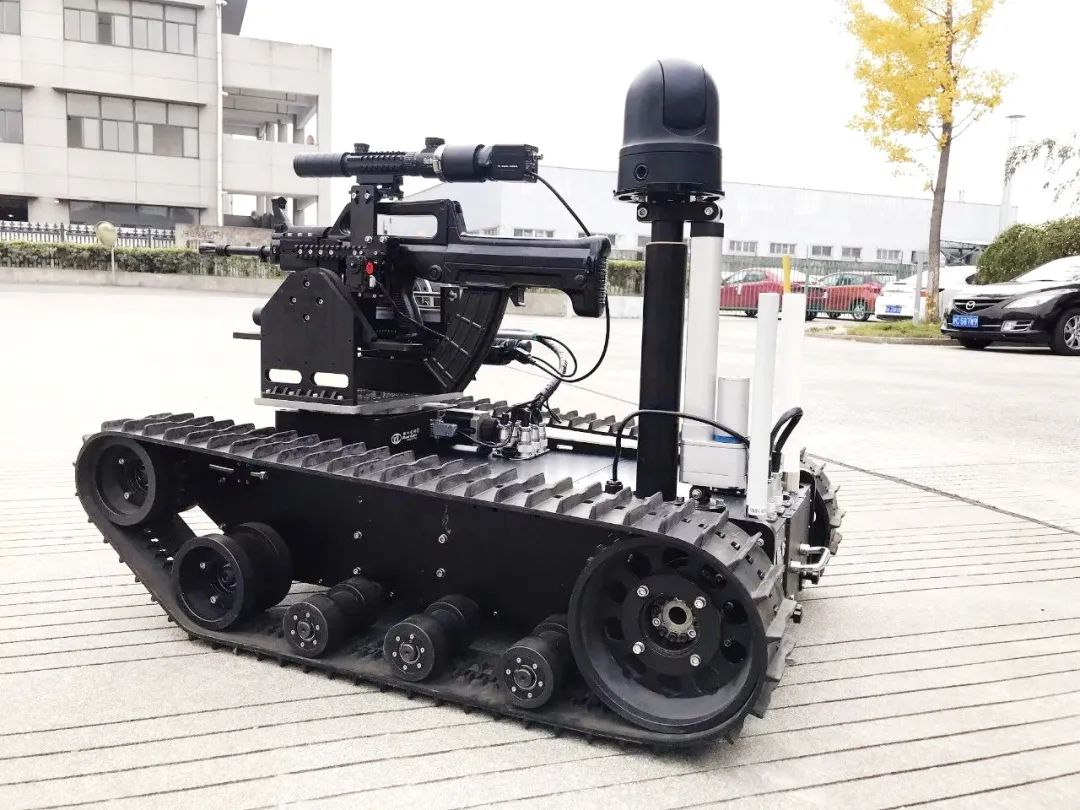 武装打击器人主要用于对恐怖分子、歹徒、偷猎者等不法分子进行视频监控、武力威慑、远程打击,协作公安、武警执行反恐任务,辅助特战队员执行边境巡逻任务。