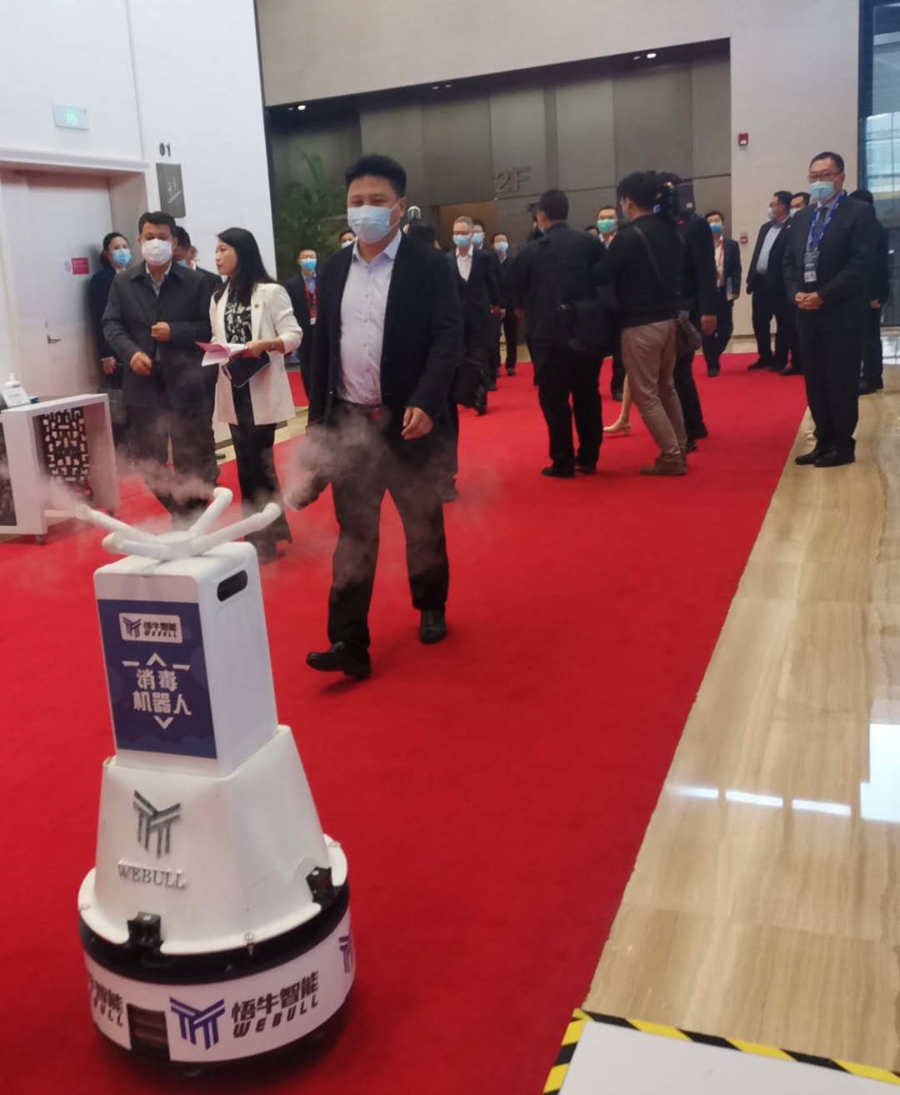 作为国家工信部嘉奖的在科技支撑抗击新冠肺炎疫情中表现突出的79家人工智能企业之一,应组委会邀请,悟牛智能消毒机器人再度出征,负责本次盛会主会场公共区域的消杀工作,为创新节贡献科技抗疫力量。