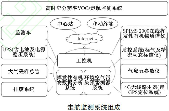 走航监测系统(上图)是通过移动监测车边走边测、实时监测分析在线数据、建立地理位置-物种-浓度关联性等手段,快速建立区域大气VOCs污染时空“画像”,创建区域大气VOCs“动态直读”模式,为实现大气VOCs精细化管理提供重要抓手,并使政府“管住VOCs排放企业”成为可能。