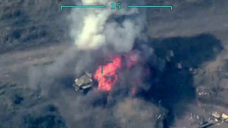 这场地区间的冲突,最显著的特征便是无人机对地面装甲车辆的致命一击。与反坦克导弹等传统反装甲火力相比,无人机的攻击还伴随着“空中摄像头”的实时“直播”,记录下攻击全程:地面装甲目标起火爆炸,地面人员仓皇逃窜…...