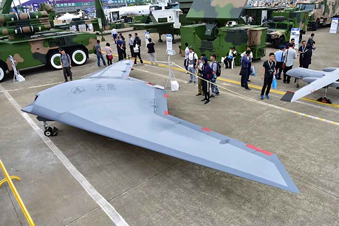 而在传统的平直长翼察打一体无人机方面,我们的产品就更多了,彩虹4、彩虹5、翼龙1、翼龙2是大家都知道的,除了它们之外、还有云影、风影、鹞鹰、双尾蝎,甚至还有机翼能够折叠上舰的HK5000G等等。