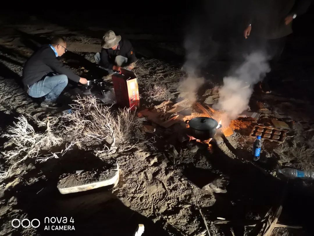 “由于没有帐篷,我们吃住都在车上。吃的主要以方便食品为主,方便面、面包、榨菜之类的。不过,工作第一,我们又增加了一个人生美好回忆点!” 贾主任笑着说道。