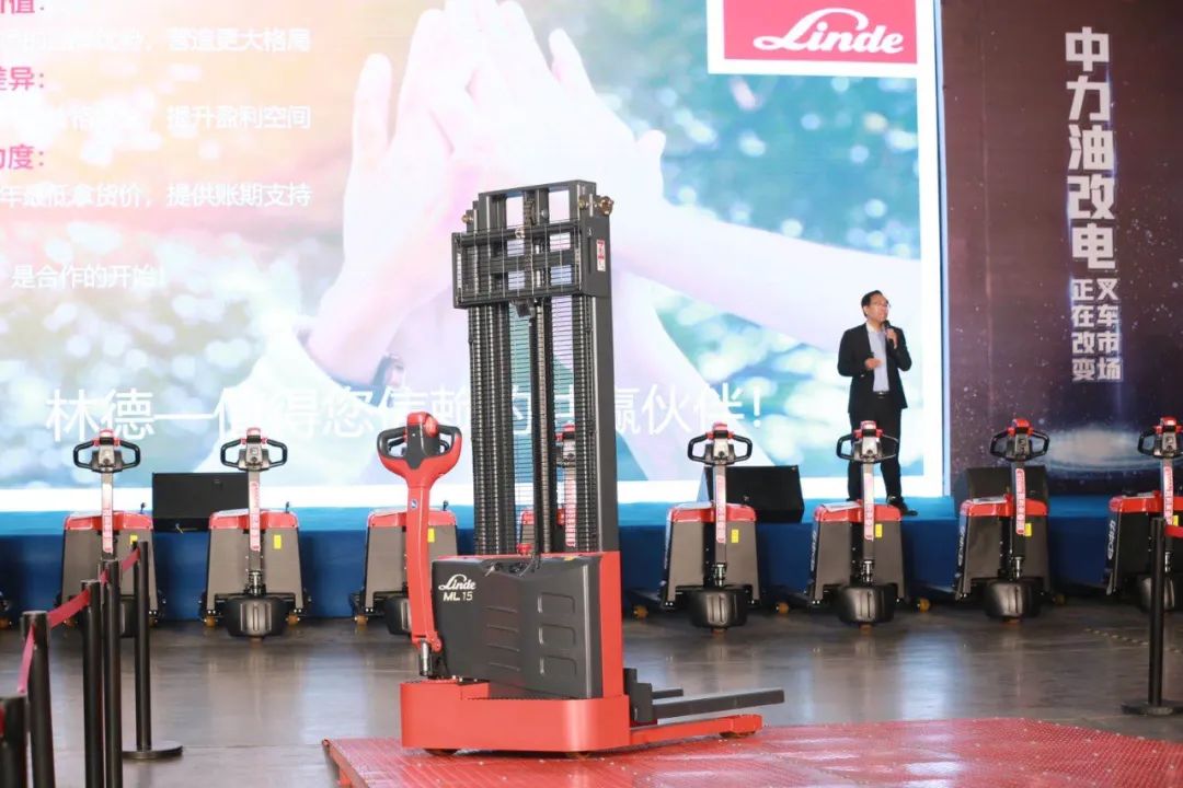 ▲林德蓄电池托盘堆垛车ML15精彩首秀