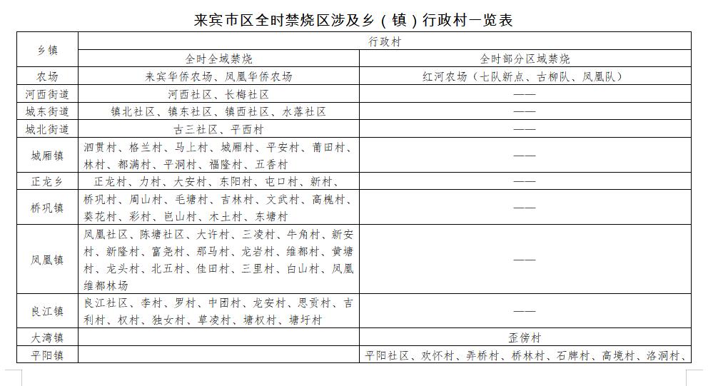 为切实做好市区(含兴宾区所辖乡镇,下同)秸秆露天焚烧禁烧工作,进一步改善市区环境空气质量,坚决打赢蓝天保卫战,根据《中华人民共和国大气污染防治法》《广西壮族自治区大气污染防治条例》等法律法规,结合《广西秸秆禁烧区和限烧区划定技术指导规范》(桂环函〔2020〕1039号)要求,现就划定来宾市区秸秆禁烧区有关规定通告如下: