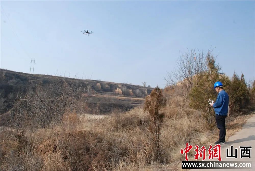 中新网山西新闻11月17日电 近日,在山西省襄垣供电公司35kV店东线安装避雷线施工现场,工作人员首次利用无人机配合输电线路检修,将导地线牵引绳传递至目标点。