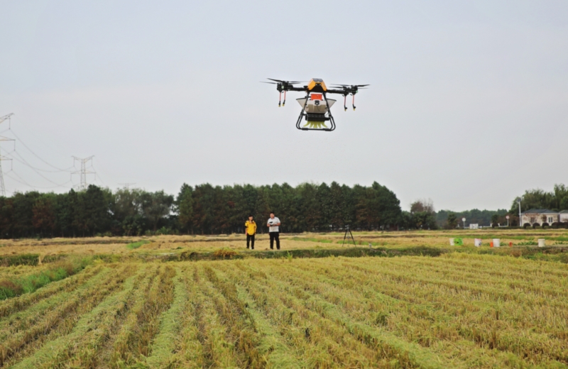 近日,江苏现代农业(小麦)产业技术体系(苏州)推广示范基地组织技术人员,在吴江区北联村200亩核心区开展无人机小麦播种。无人机不到3分钟就完成5亩田的播种,大大提高工作效率,而且播撒均匀出苗率高。