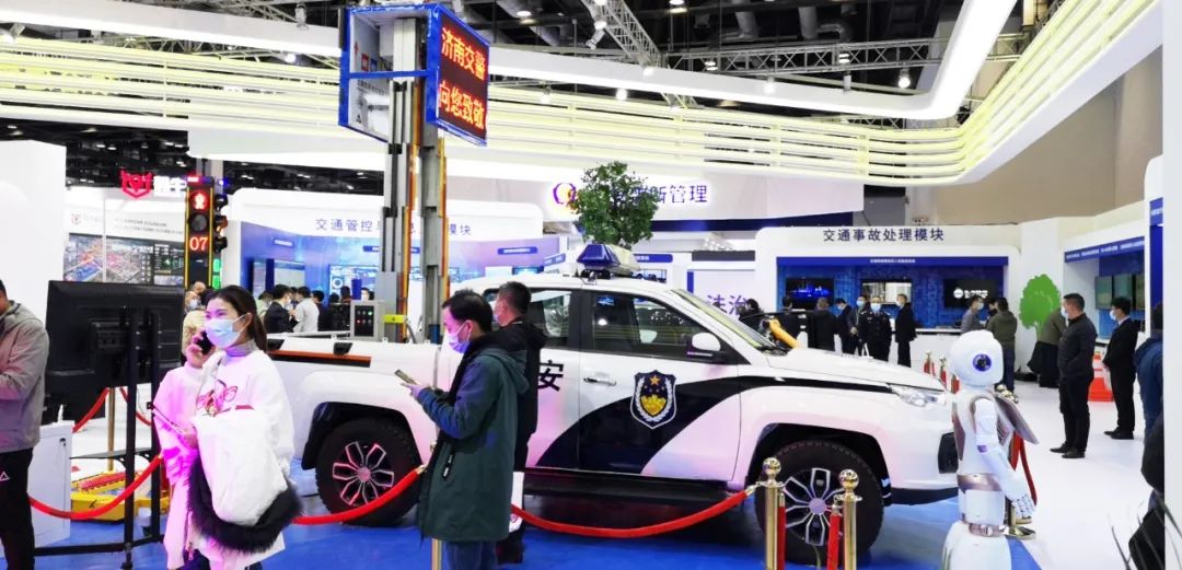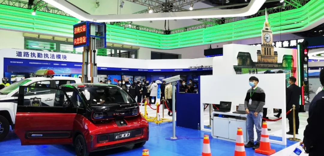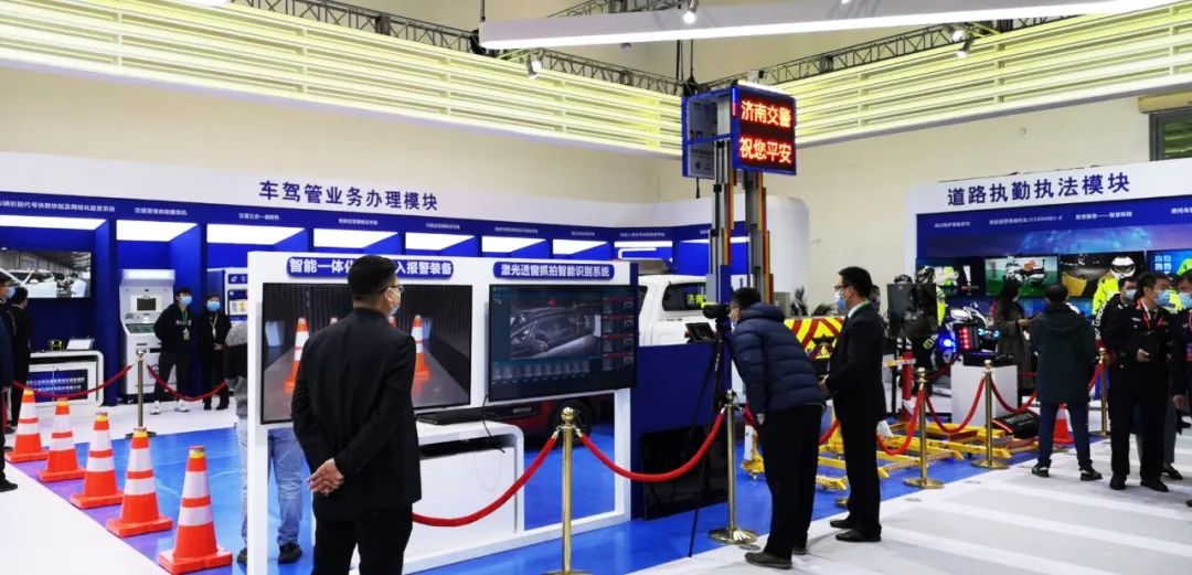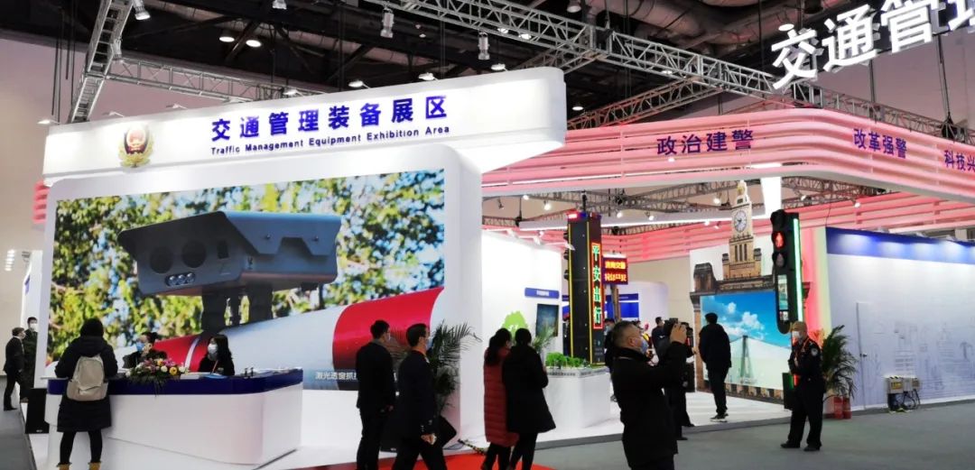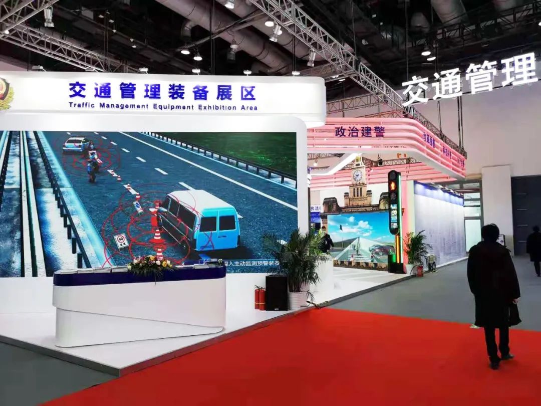 交通管理装备展区结合声、光、电与数字系统的综合运用,充分利用互动体验装备、视频、音频和灯光效果,营造出良好的观展氛围。展区内部融入城市生活场景,模拟道路、汽车、路障、绿树等,全方位、多角度展现公安交通执法管理和便民利民装备。