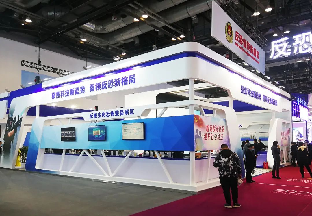 反恐怖装备展区,整个展台以警署造型为主,同时展示现代化高科技反恐技术和各类先进的反恐装备,用科技的力量打造智慧反恐,保卫人民安危。