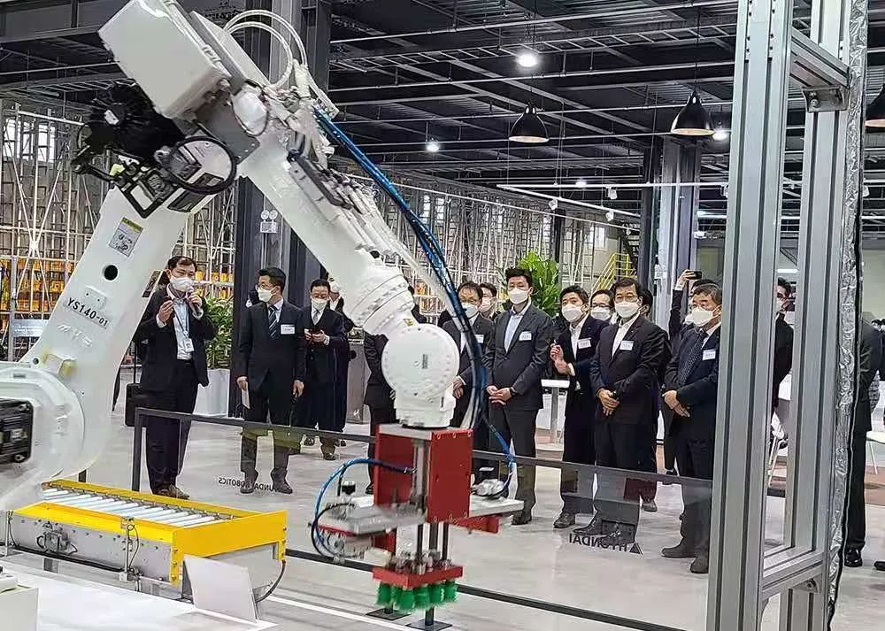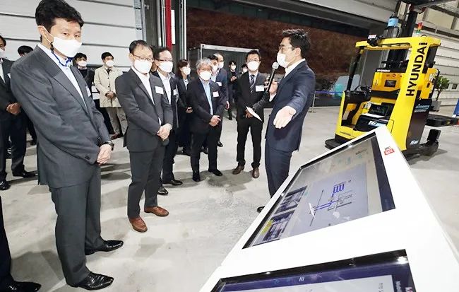 在造船和重工业领域,引入了增强现实(AR)远程检查解决方案。还发布了有关预测性维护解决方案和AR远程教育,来检测并解决船舶异常问题。此外,还演示和介绍了智能物流解决方案,例如用于物流平台创新的数字孪生物流中心、AI 预测维护和物流自动化。同时,还发布了无人巡逻控制系统、建筑物控制模型等。当天,还举行了机器人物流系统演示中心成立仪式。目前,一共引入了12种尖端自动化系统,包括自动装卸各类型箱子的智能码垛机器人,以及无人叉车、智能自动仓库等自动化系统。