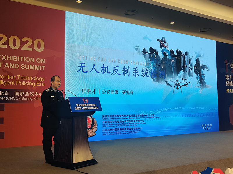 公安部安全与警用电子产品质量检测中心焦胜才博士进行了“无人机防御系统检测”主题发言。