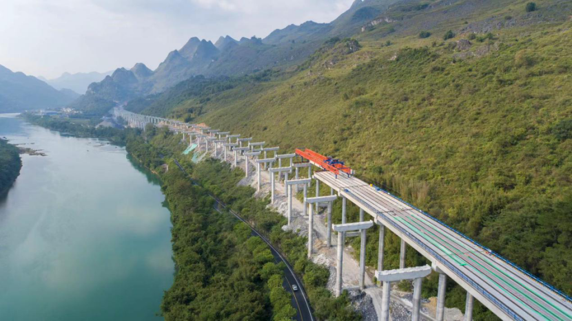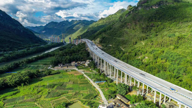 青莲河特大桥施工地质条件复杂,桥隧相连,需要竖起数十根几十米高的桥墩,建设者大力推进新设备、新技术的应用,确保高墩施工安全。桩基施工,采用了声呐探测技术应用辅助解决桩基溶洞难题;墩身施工还应用了涂装新材料,既可以隔离紫外线一样,对墩柱进行保护,又防潮防腐,提升桥墩的品质和耐久性。
