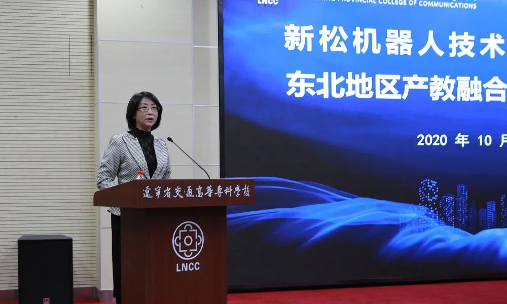 花蕾副厅长在活动现场发表讲话。她强调,希望辽宁交专与新松公司切实扛起引领辽宁省职业教育产教融合校企合作的旗帜,充分集聚并发挥各自优势,高质量、高水平实施专业群建设和实训基地建设,打造一支行业有权威,全国有影响的双师队伍,形成可借鉴可推广的校企合作机制和协同育人模式。同时要注重合作经验的总结、创新点的挖掘和典型成果的凝练提升与推广应用,为全省乃至全国职业教育深化产教融合校企合作提供创新模式。