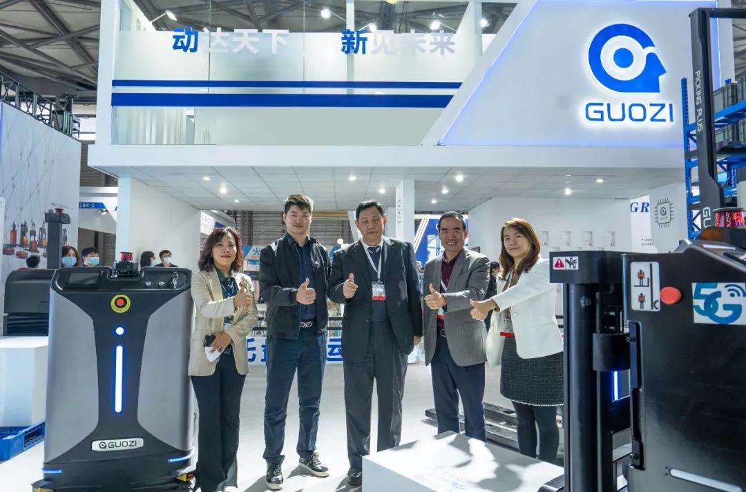 中国物流与采购联合会纪委书记党委副书记余平,中国物流与采购联合会会长助理、中物联装备委主任马增荣,中国物资储运协会秘书长张华等行业领导莅临国自展台为两款新产品揭幕。