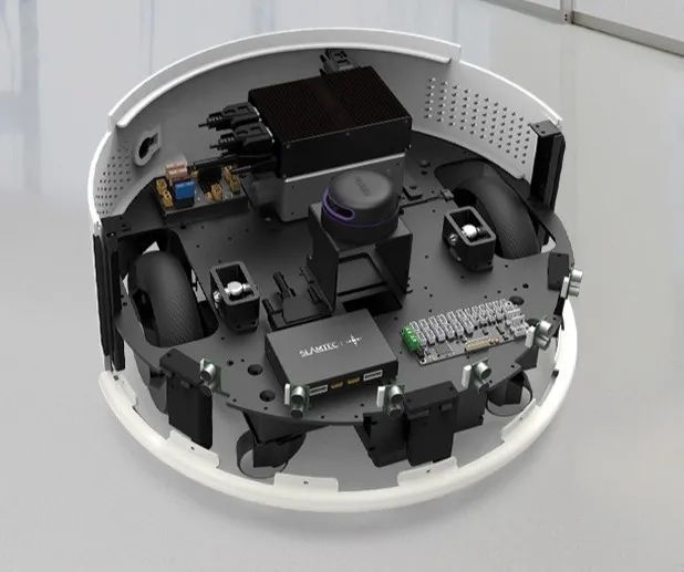 机器人底盘里包含了:激光雷达、自主定位导航算法模块、深度摄像头、电池、电机、超声波等其他传感器配件,把这些软硬件整合起来,就让机器人底盘拥有了通用化和结构化的特点。
