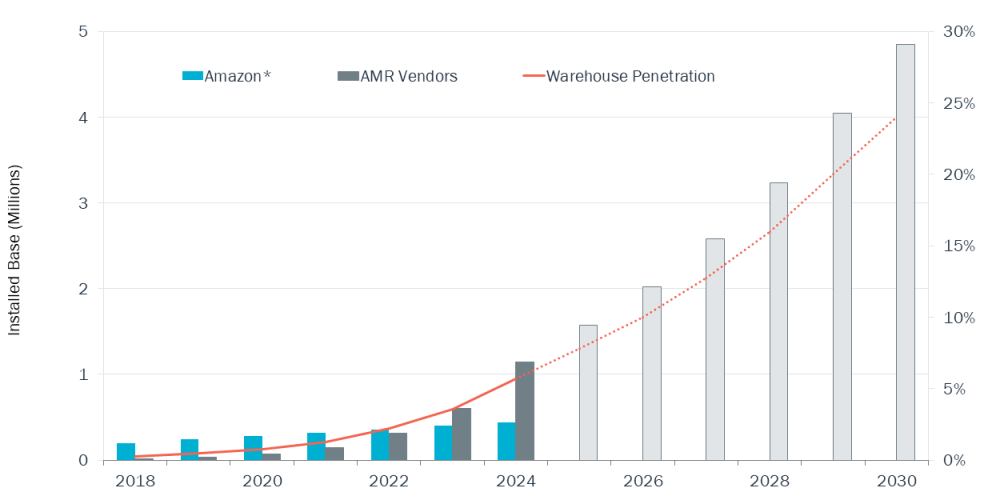 但是,有一些因素可能表明未来的定价压力很大。例如,正在引入安全标准,这将提高安全功能和传感器的最低阈值。这可能会使新的或低成本的供应商难以通过新解决方案将其推向市场。我们还看到许多应用都采用基于SLAM的技术,这增加了机器人的成本。
