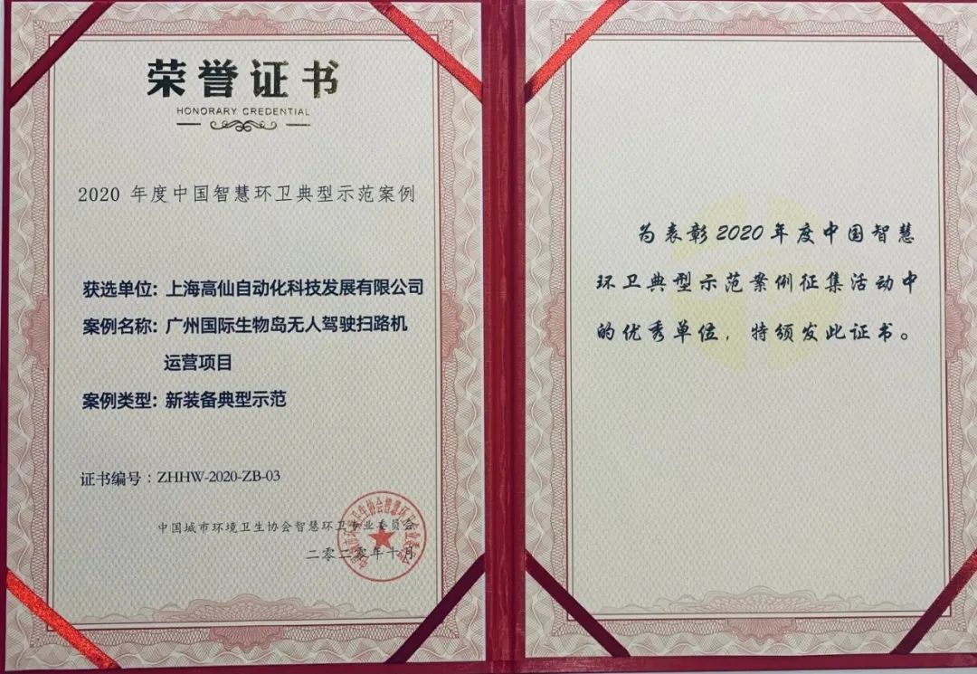 近日,在广州市黄埔区政府的大力推动下,高仙机器人出品的无人驾驶环卫车G2正式落地广州国际生物岛,对环岛道路的执行清扫工作,同时该项目获得了中国城市环境卫生协会的关注与认可,斩获了2020年度中国智慧环卫典型示范案例荣誉。