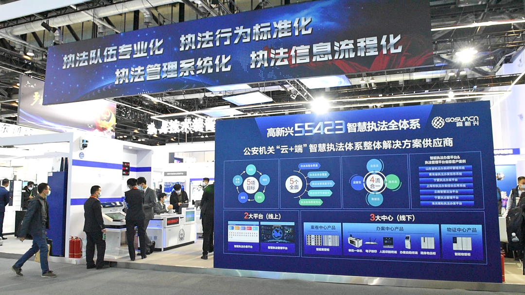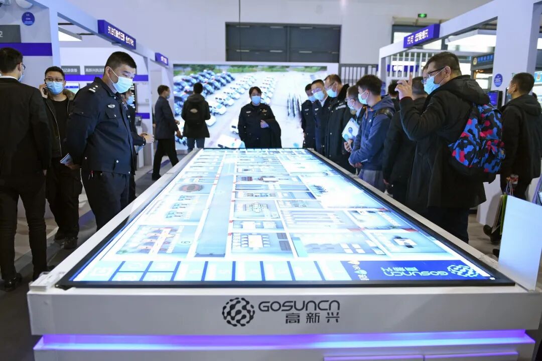现场高新兴的工作人员介绍,为全面推进公安机关执法规范化的建设,依据公安的相关要求和标准,同时为了让流程与公安实战业务更贴合、运作更高效,高新兴科技集团首创了“云+端”的智慧执法体系,现在这个沙盘就相当于把这个系统浓缩在这里展示,让观众10分钟现场体验。