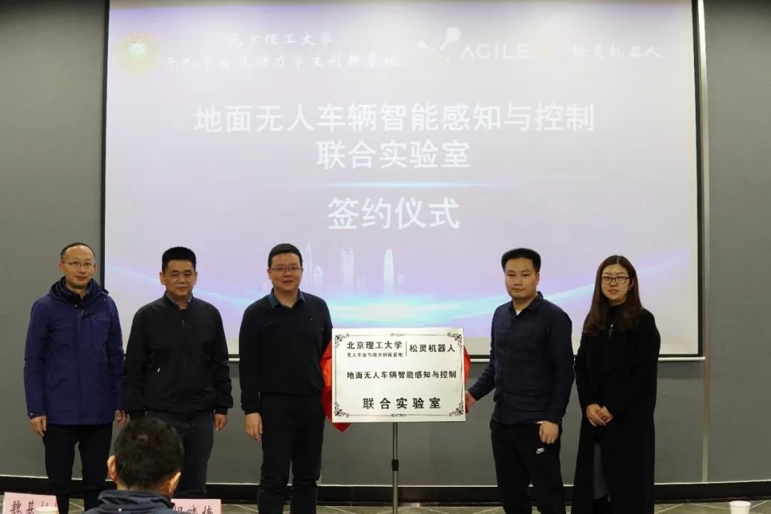 11月26日上午,松灵机器人联手北京理工大学(下称“北理工”)无人平台与动力学生创新基地设立的“地面无人车辆智能感知与控制实验室”正式揭牌。双方将在移动机器人、无人驾驶、人工智能领域,就机器人在复杂环境情况下的多传感器融合、感知定位、导航决策等关键领域展开合作,并本着互利共赢的原则,为产界和学界的连接创造合作范例。