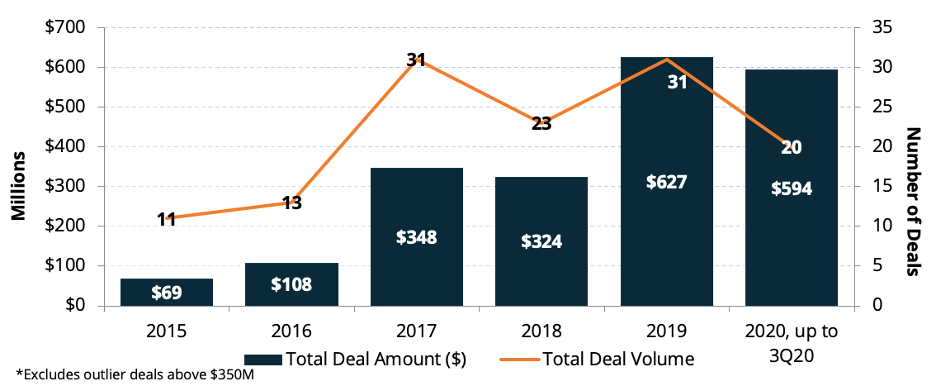 2019年,工业自动化市场价值已达到1680亿美元,复合年增长率为8.9%。在清洁技术领域开发创新过程优化解决方案的初创企业的投资正在增加(见图2)。
