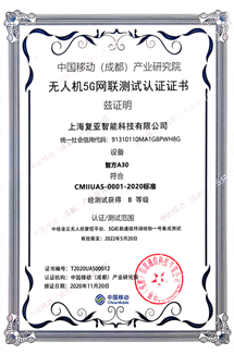 在“5G新基建·智航新未来”5G智慧民航峰会现场,中国移动颁发了“5G网联无人机认证证书”, 复亚智能成为首批获得中国移动网联无人机认证的企业之一。