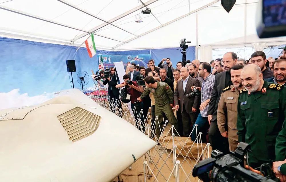 2019年9月21日,在伊朗德黑兰,伊朗伊斯兰革命卫队司令萨拉米(前右一)参观被伊朗军方截获的美国“全球鹰”无人机。新华社发