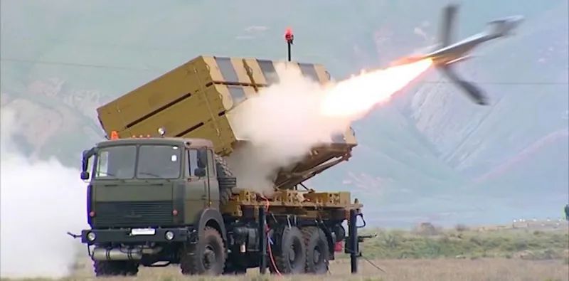 阿塞拜疆国防部官方视频录像的截图,展示了“哈洛普”这种“游荡弹药”的发射瞬间