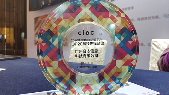 奇志科技凭借在行业内首创的无人机数据服务,及领先的工程管理数字化解决方案,荣获 “2020 年度中国地产数字力 TOP 20 科技先锋企业。”