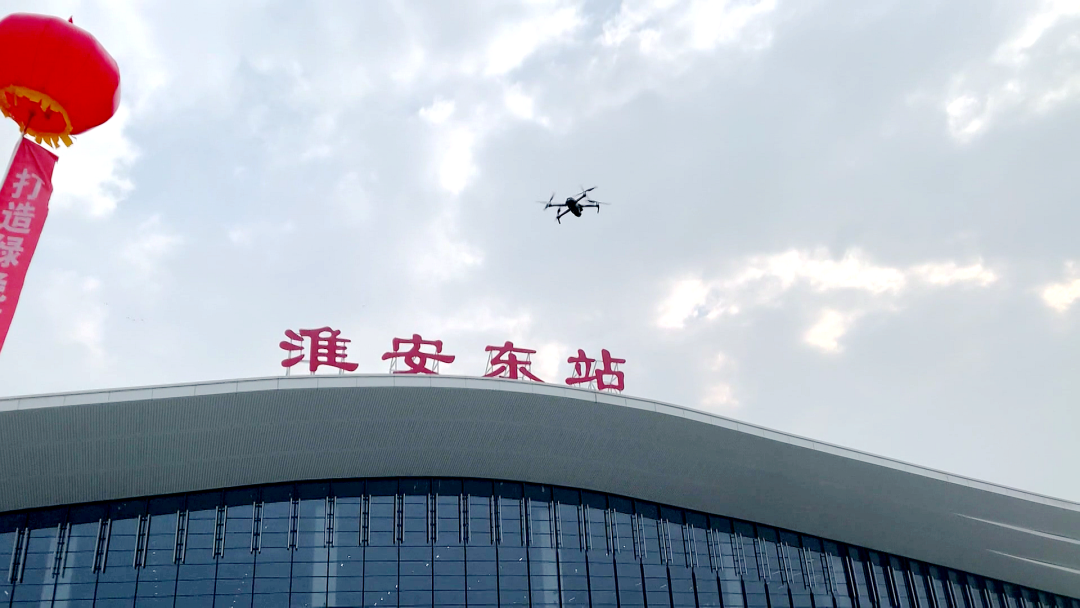 记者在高铁淮安东站广场看到,摄影爱好者陈先生正在调试设备准备拍摄列车进站的画面,但就在陈先生准备升空无人机时,却被南京铁路公安处淮安站派出所的民警劝离了。