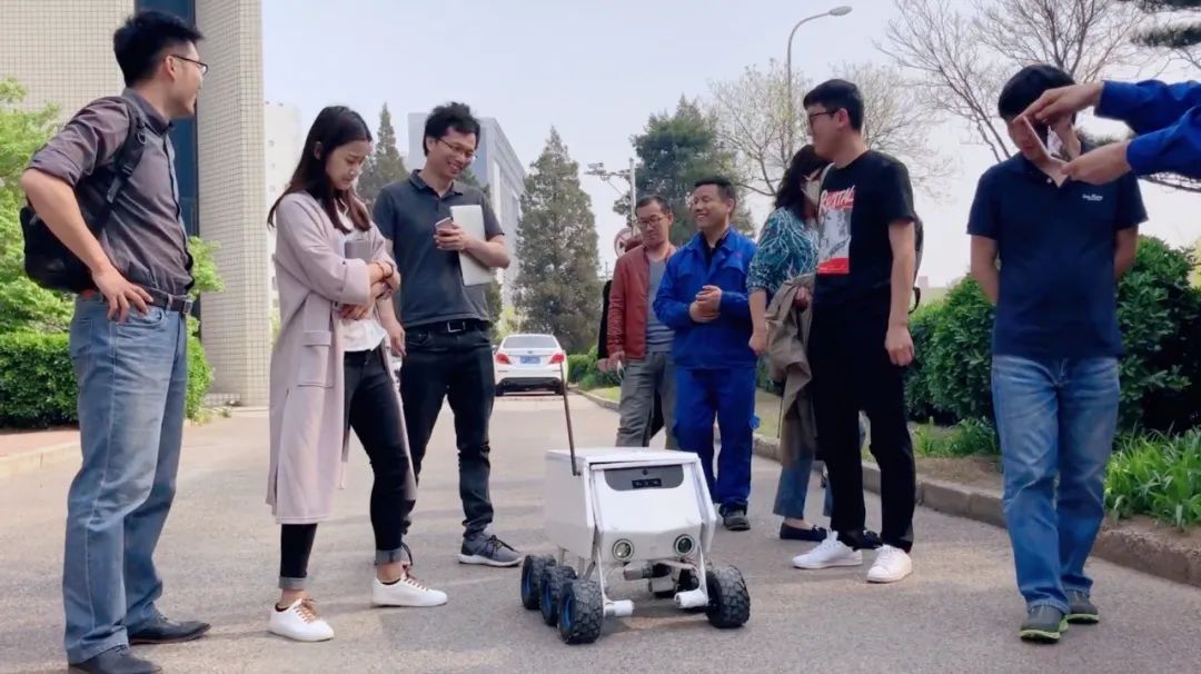 这是林锫森的第二次创业,做最后一公里的无人配送,产品是一个像探月机器人一样的可爱小车。