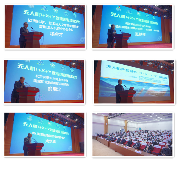 闭幕式上举行了无人机1+X+Y就业创业项目发布仪式,俞启定、张铁柱等4位专家作交流发言,全国人工智能职业教育集团无人机专业委员会主任龙威林作题为《无人机产教融合“1+X”+“Y”行动方案》的主题报告,更是掀起场内高潮。