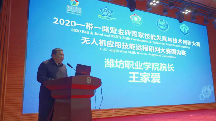 12月19日上午,2020一带一路暨金砖国家技能发展与技术创新大赛无人机应用技能远程研判国内赛决赛在潍坊职业学院圆满落幕。中国发明协会党委副书记、副理事长唐大力,潍坊职业学院院长王家爱,欧盟中国城市发展委员会主席、远洋航空科技(天津)有限公司董事长张毅,中国职业技术教育学会学术委员会委员、常务理事罗志,北京师范大学博士生导师、国家职业教育研究院副院长俞启定,俄罗斯自然科学院外籍院士、格鲁吉亚国家科学院外籍院士、山东理工大学原校长张铁柱,欧洲科学院荣誉院士、深圳无人机行业协会会长杨金才,中国发明协会发明创业促进中心主任周小麒,现代职业教育研究院副院长郭海清等学者、专家以及全国各地的选手、领队和指导教师100余人出席了闭幕式。闭幕式由金砖国家工商理事会(中方)技能组执行总监崔雪艳主持。