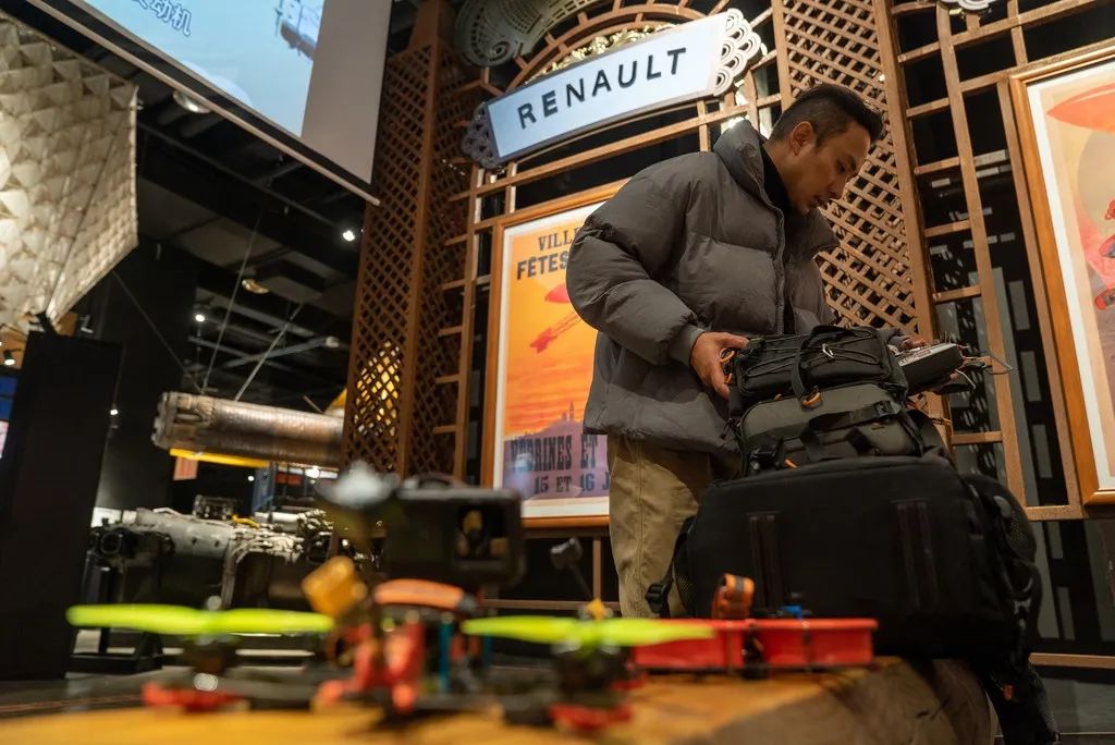 今年的热门战争剧《金刚川》的航拍部分,就是余游团队完成。据余游介绍,在开机之前,导演、摄影指导、演员、航拍飞手会先在沙盘模拟一遍走位和运镜,然后试拍优化方案,最终才是正式拍摄。同时,飞手也会跟演员进行沟通,“我们会给演员定很多参照物的点位,演员用余光注意我的机位,到达点位该做什么动作都会提前沟通好,让双方更快找到节奏。”余游一边用手里的穿越机比划,一边介绍说。
