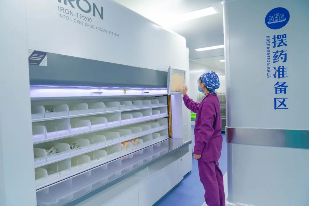 作为全国首家全品种智能化静配中心,这里采取机器+专业药师的半自动配药方式,有着目前全国一流的配药效率及质量。