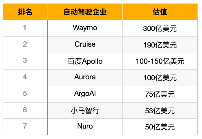在自动驾驶头部企业中,百度Apollo与Waymo、Cruise同属于少数估值过百亿美元的企业,同时有分析师指出,目前市场对百度Apollo的估值依然较为保守,如果未来投资者提高热情,Apollo的估值还会更高。