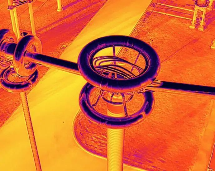 无人机巡检中的可见光画面和红外测温画面