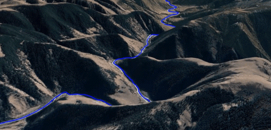 除了气候恶劣,测区环境也是前所未有的艰难!整个测区将近一半为无人区,无网络 RTK 信号覆盖。而且大部分测区全是山地,两山夹一沟,山谷斜距至少 70 度,根本无法进行像控点布设。