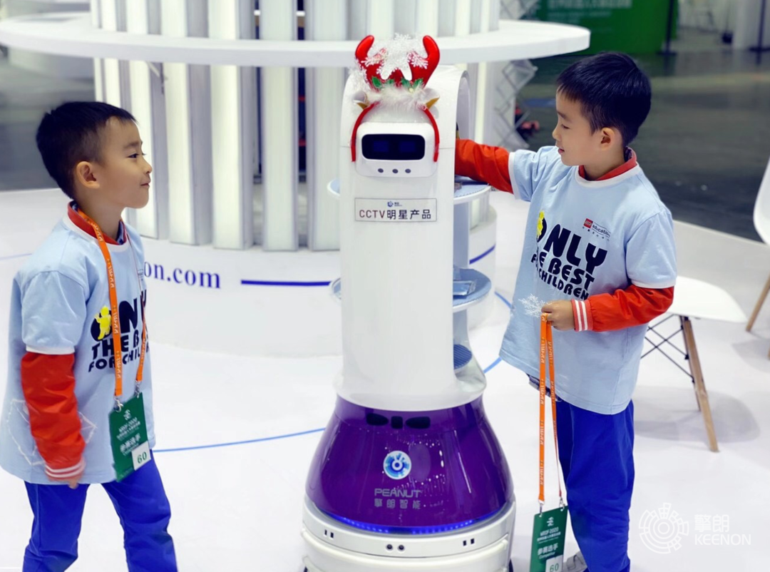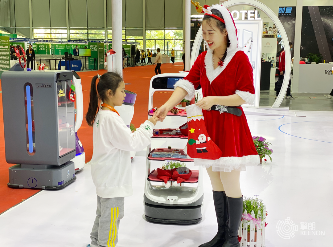 接待区、点餐区、收台区、酒店区、无人货柜……擎朗智能在此次博览会现场模拟实际餐饮及酒店场景。观众进入“KEENON智慧餐厅”,可以近距离体验机器人领位、机器人点餐、机器人送餐、机器人配送物品、甚至是机器人回收餐具,支持垃圾分类等全流程智慧服务,当然,你也可以“皮”一下,故意阻挡机器人们的行驶路线,看看它是否真的“智能”。